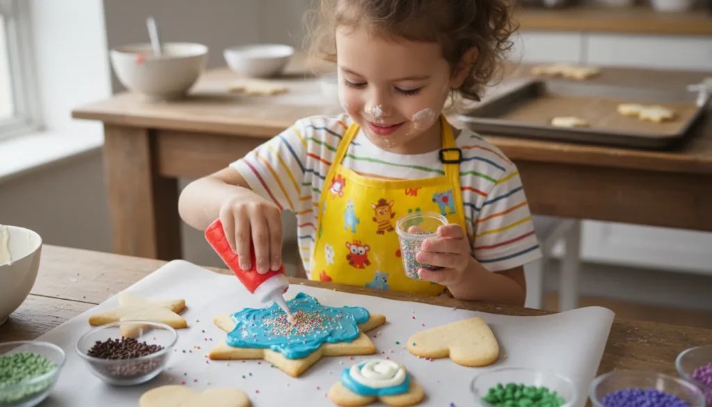 - Decorate Sugar Cookies – bake plain rounds, let kids frost & sprinkle