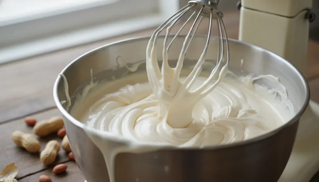Fluffy vanilla nougat being prepared for homemade Snickers bars