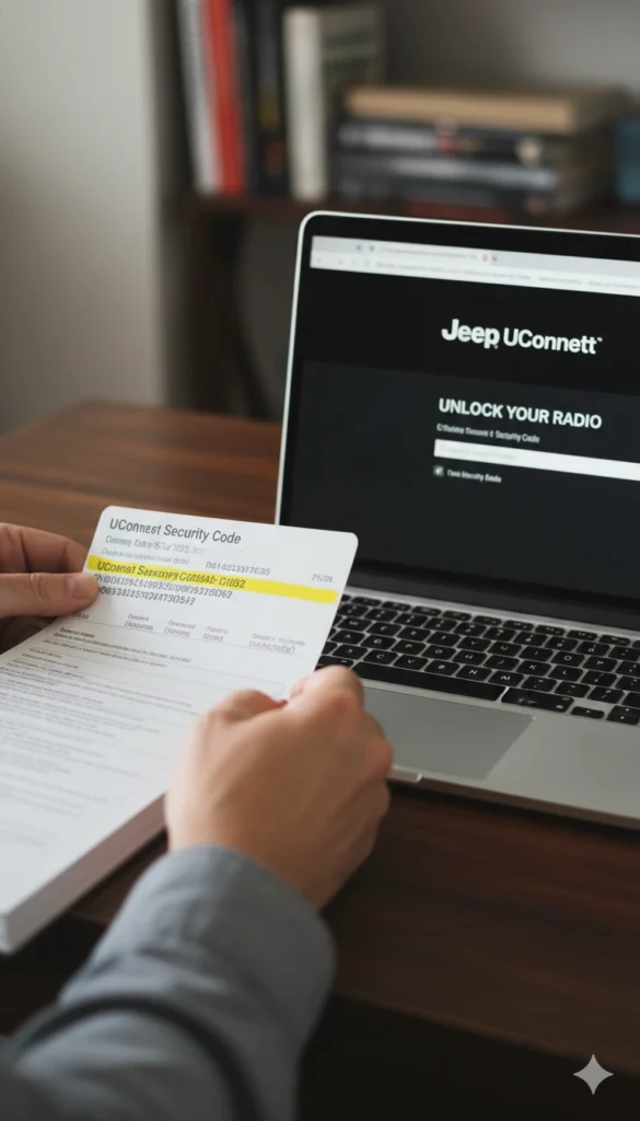 Many Jeep owners overlook the simplest solution: the paperwork that came with the vehicle. The Uconnect security code is often printed on a small card tucked inside the owner’s manual or glove compartment. Look for a label that says “Radio Security Code” or “Uconnect PIN.”