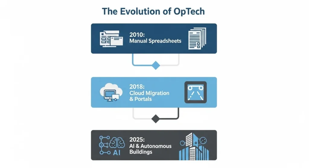 We’re bombarded with tech business news OpTech announcements promising revolution—but on the ground, property managers are logging into 10+ disconnected systems just to run one building.